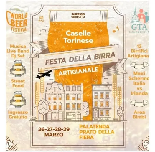 Quattro giorni di birra artigianale, street food e musica dal vivo alla Palatenda del Prato della Fiera di Caselle Torinese dal 26 al 29 marzo 2026.