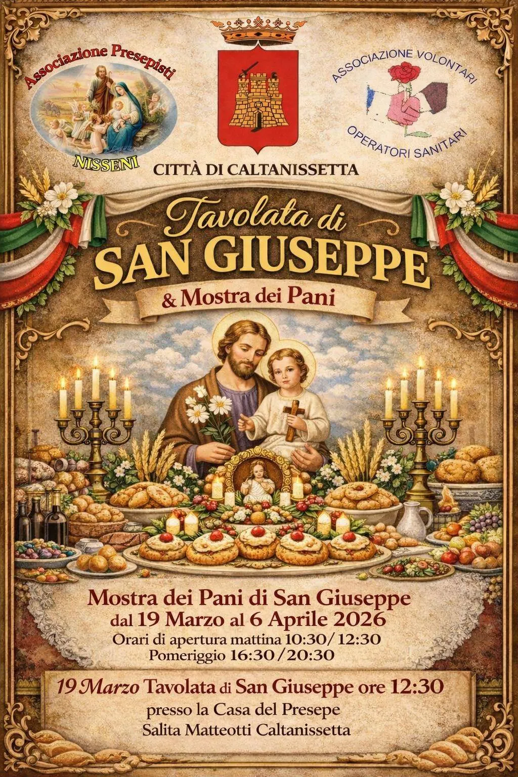 Dal 19 marzo al 6 aprile 2026, Caltanissetta celebra la tradizione con la Mostra dei Pani e la storica Tavolata di San Giuseppe dedicata alla devozione popolare.
