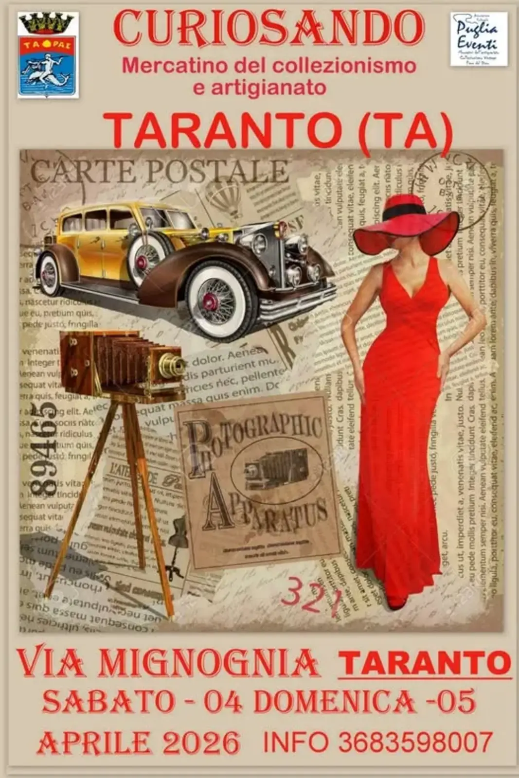 Il 4 e 5 aprile 2026 Via Mignogna a Taranto ospita Curiosando, un evento tra antiquariato, collezionismo e artigianato creativo nel cuore della città pugliese.